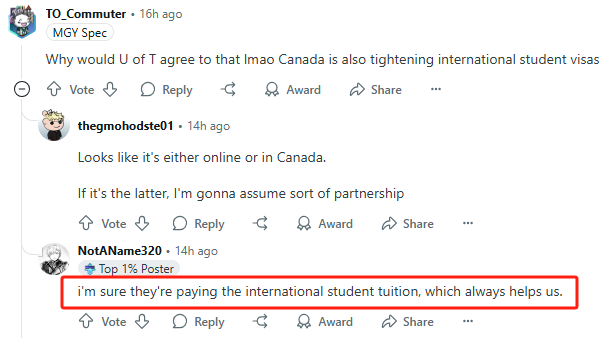 对此,多大(UofT)网友议论纷纷。有人调侃:“我们终于成了哈佛的北方兄弟…”