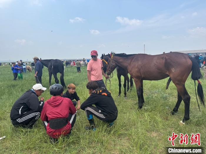 “接力是3人一队。第一棒的马必须要快,速度很重要。”为了参加本届“马超”,牧民宝力道巴特尔这次用车拉着7匹马,从数百公里外的阿巴嘎旗赶来。记者见到他时,他正在检录区为马检录。“参赛的人很多,这样的比赛很好。”