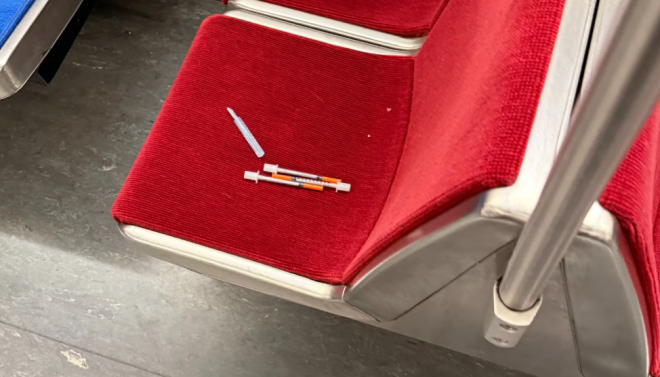 一名多伦多TTC乘客表示,周六早上在地铁座位上看到注射器让他感到害怕和不安。