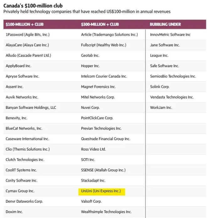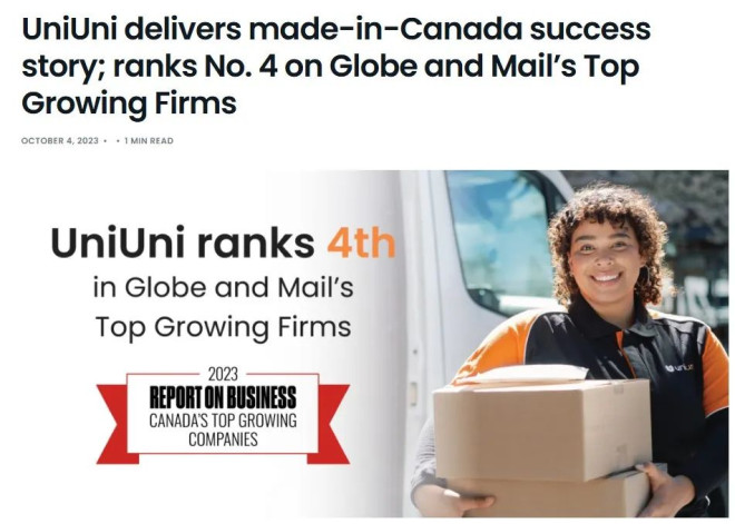 据UniUni的linkedin页面显示,UniUni成立于2019年,总部位于列治文,是一家领先的技术驱动物流公司,在北美各地为电子商务平台、在线零售商和品牌的客户提供服务。去年12月,UniUni被《环球邮报》列为70多家年收入超过$1亿美元的加拿大私营科技公司之一。