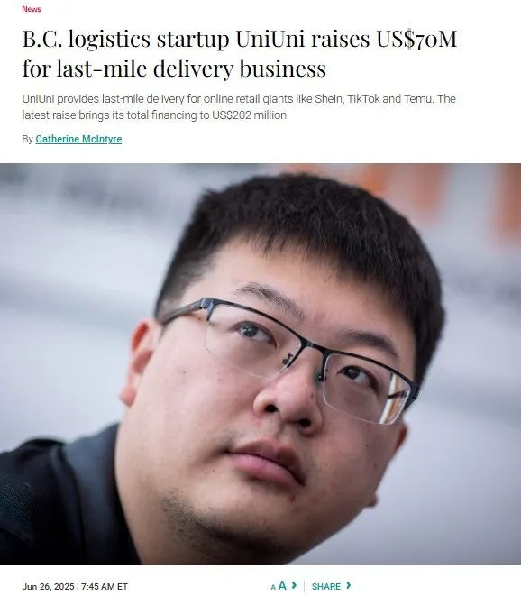 随着拼多多海外版Temu在拓展市场,一家华人创办的快递公司UniExpress Inc.(通常称为 UniUni)也进入大家的视野。 加拿大《金融邮报》日前发文称UniUni正在成为打败加拿大邮政的最新独角兽公司。