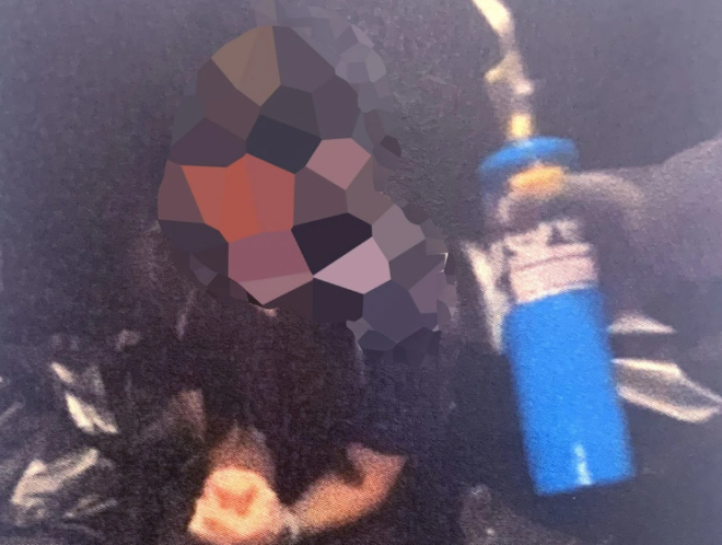 检察官称:“这张照片展示了丁烷喷灯、L.E.本人以及房间内黑色覆盖物的情况。”
