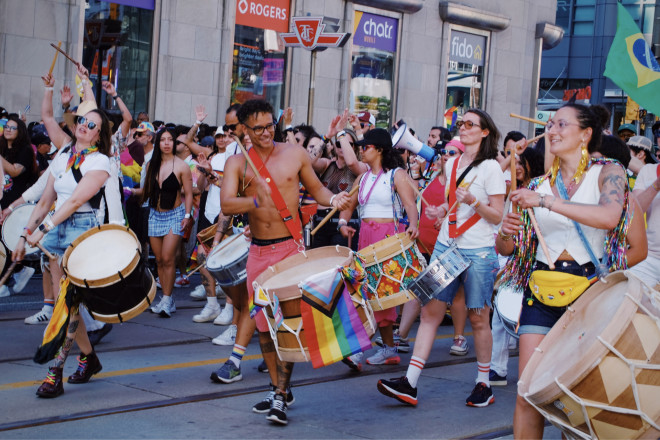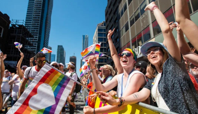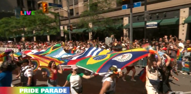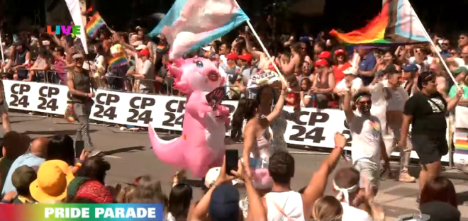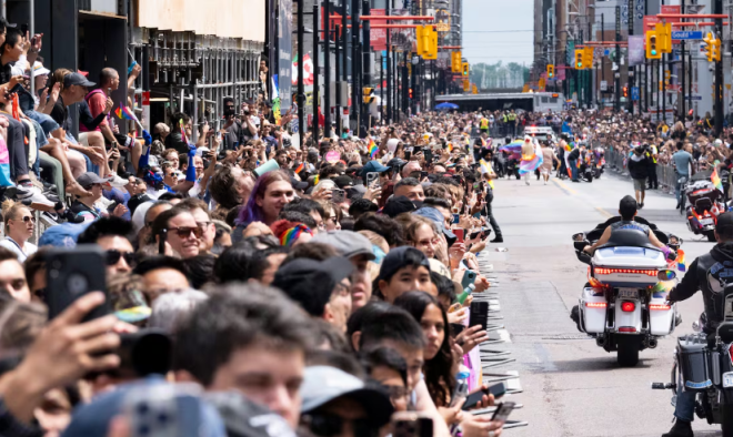 多伦多第44届年度自豪大游行今天举行,数十万人聚集市中心与数千名游行者、音乐和庆祝活动一起涌入市中心。