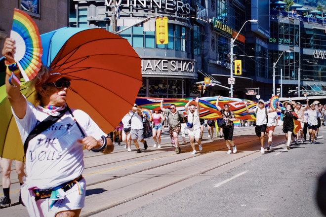游行队伍沿央街向南行进,最终在Queen Street West和Bay Street交汇处结束。