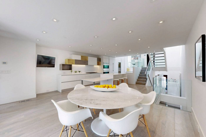 从外观上看,这栋房子绝对令人叹为观止。时尚的Zink外墙、修剪整齐的金字塔形树木以及引人注目的现代建筑,赋予了它非凡的吸引力。此外,它还拥有一条可容纳三辆车的地暖车道,这在Yorkville简直堪称房地产奇迹。
