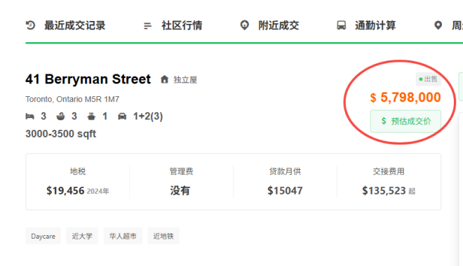 但该地区的房价在过去一年里下跌了30%以上。虽然Yorkville绝对是高端社区,但市中心的大部分房屋售价仍在200万元左右。所以,要价近600万元?这……太大胆了。尤其是在目前的经济形势下。