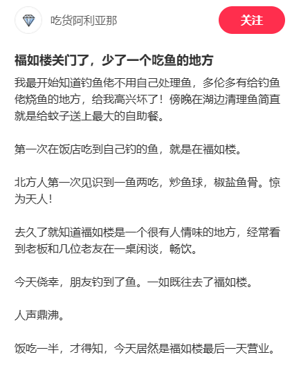 “饭吃一半,才得知,今天居然是福如楼最后一天营业……有点怅然,有点失落,有点感慨。