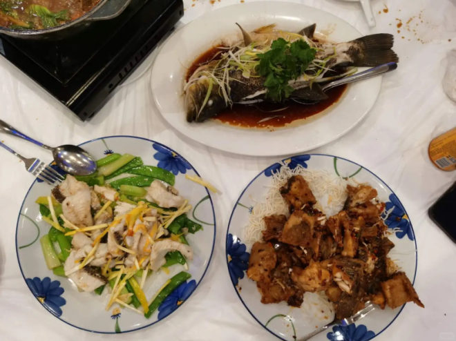 我最开始知道钓鱼佬不用自己处理鱼,多伦多有给钓鱼佬烧鱼的地方,给我高兴坏了!傍晚在湖边清理鱼简直就是给蚊子送上最大的自助餐。第一次在饭店吃到自己钓的鱼,就是在福如楼。
