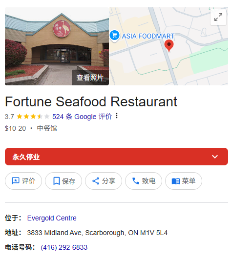 与此同时,谷歌页面也显示,福如楼已永久停业。