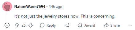 一位网友似乎深谙心理学:“令人担忧的是,现在已经不仅仅是珠宝店了。”