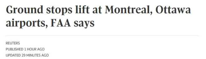 另据美国联邦航空管理局发言人表示,由于周四发生炸弹威胁事件,蒙特利尔和渥太华的国际机场一度暂停出港航班,但目前停飞命令已解除。