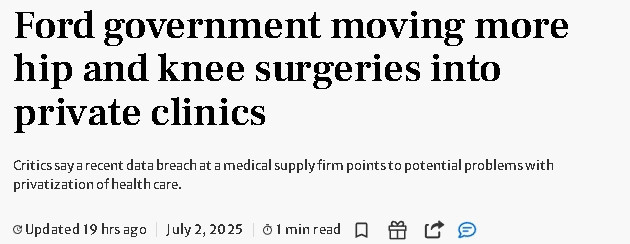 反对党自由党省议员、急诊室医生阿迪尔·沙姆吉(Adil Shamji)表示,政府应该将医疗程序只外包给非营利性诊所,以避免基本上任何供应商都能进来提供这些手术。