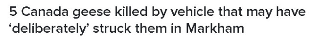 今天下午,万锦市发生一起车辆撞击加拿大鹅事件,造成5只鹅死亡。
