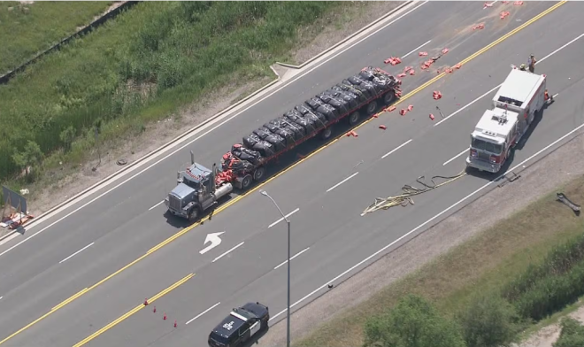 事故似乎涉及一辆SUV和一辆运输卡车。从Chopper 24拍摄的图像显示,SUV驾驶侧严重受损。