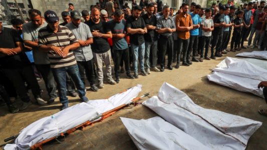 頂圖圖說:7月1日,在加沙城,民眾為以軍襲擊中的遇難者祈禱。據巴勒斯坦通訊社7月1日報道,以色列軍隊當天襲擊加沙地帶多地,造成巴方至少51人死亡。(新華社)