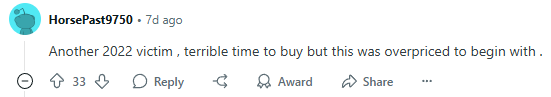 有人认为是购买时机不对:“2022年的另一个受害者,购买时机糟糕,在一开始价格就过高。”