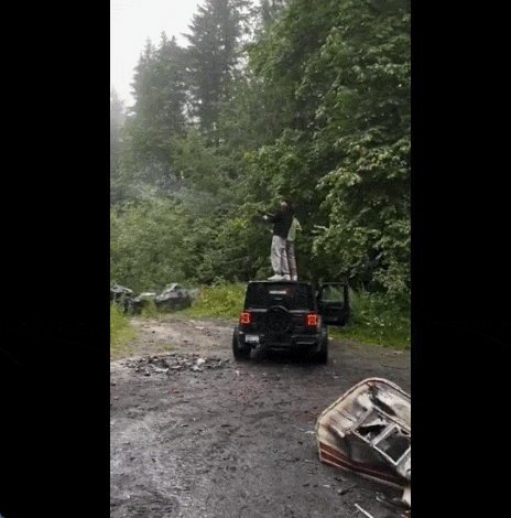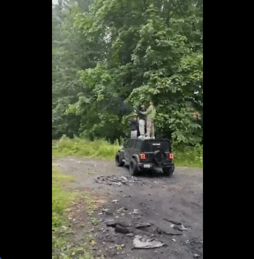 视频显示,在一处树林空地上,三名印度男子身着便服,站在一辆SUV车顶上,持枪朝天连开数枪,全程动作娴熟,神情轻松。