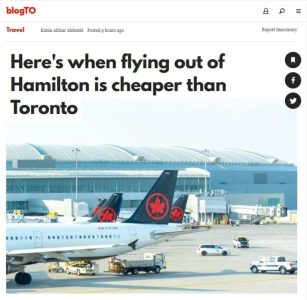 除了挑時間、比航司,不少人也在考慮另一個辦法。不從繁忙的多倫多皮爾遜國際機場(Toronto Pearson),而是從約一小時車程之外的漢密爾頓約翰·C·蒙羅國際機場(John C. Munro Hamilton International Airport)起飛。