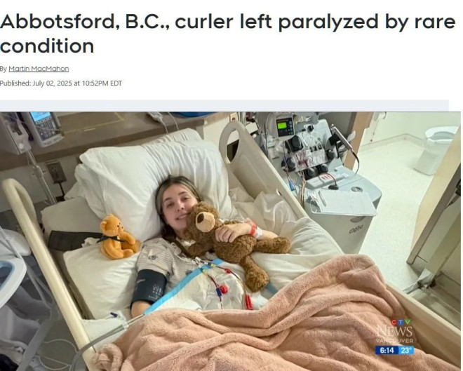 BC省一位冰壶运动员被诊断出患有一种罕见的神经系统疾病,她正面临着人生的挑战。她某天早上醒来时发现自己无法动弹,仅仅过了两小时,医生就确认她从颈部以下完全瘫痪。