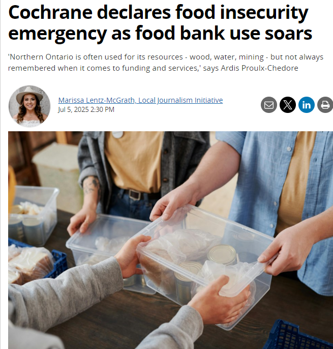 情况却恰恰相反。今日,加拿大经济最强省安大略的小镇Cochrane,竟然出现了严重缺粮的情况,政府宣布进入紧急状况。