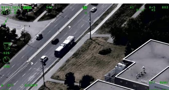 直升機上的一名警官說道:“在最後一秒擠過去,繞過一輛運輸卡車,準備上401高速。他開得飛快。”
