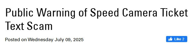 约克区警局今天发布通告,提醒居民警惕一则正在流传的、涉及虚假超速摄像头罚单的短信。
