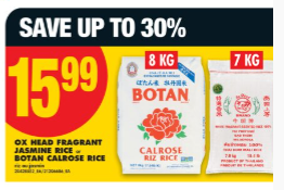8kg牡丹原圆米、7kg牛头牌香米$15.99!
