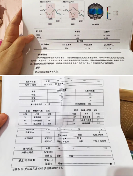持续性专注力测试、韦氏智力测试……娄月站在心理科诊区走廊一侧,在手里堆叠着的诊断结果中翻找。某张她无暇细究的表格末尾,她终于发现了那一行能看明白的诊断结果。