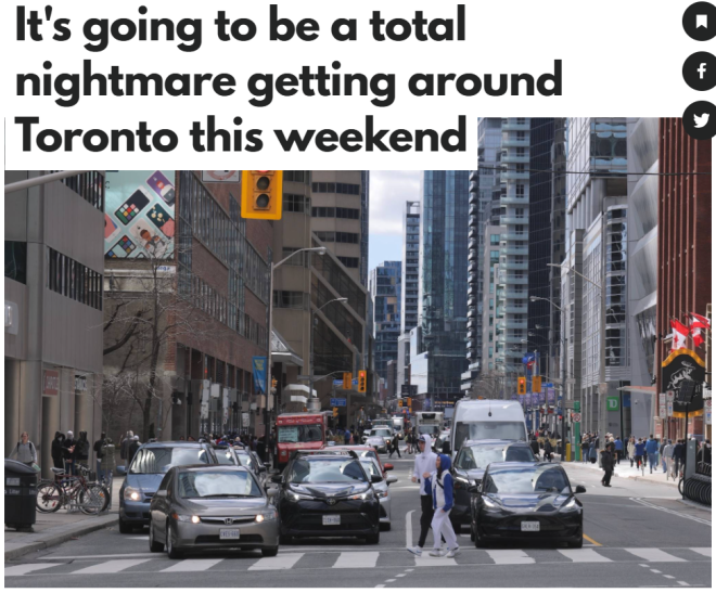 此外,1号线St. Clair West站与St. Andrew站之间的路段也将因轨道施工关闭,这次关闭将再增加5.5公里的停运路段,使本周末地铁中断的总长度达到惊人的14公里。