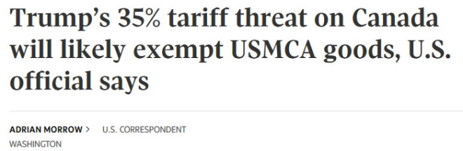 特朗普于周四晚间发出了关税威胁,在一封致总理马克·卡尼(Mark Carney)的信中。这封信在很大程度上类似于特朗普一直在向世界大多数国家发送的格式信函,威胁如果不与美国达成协议,将在8月1日之前施加不同水平的关税。