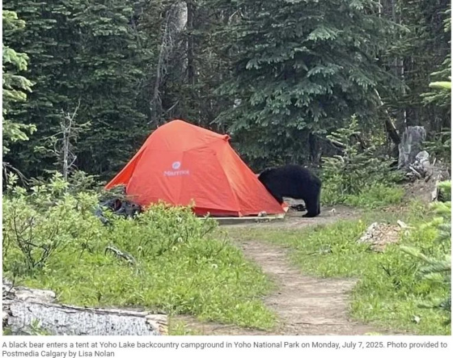 在加拿大公园管理局野生动物管理官员到达现场之前,优霍湖野外露营地的 13 名露营者成功地吓跑了一只闯入帐篷的黑熊。事件中没有露营者受伤。
