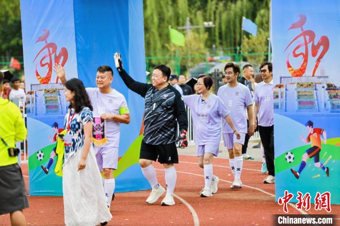 当日,“足尖探丝路 星光耀新和”香港精装明星足球队新和公益足球邀请赛,在新疆新和县唐安西都护府文化园足球场上举行。