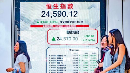 中國上半年國內生產總值(GDP)增長優於預期,展現經濟強韌。恒指昨日飆高386點,迫近3月份高位。此外,英偉達恢復向中國交付H20芯片,消息利好科技股表現,其中金山雲(03896)應聲飆高約17%。景順亞太區環球市場策略師趙耀庭表示,投資者對中國股市的情緒日益樂觀,隨着人工智能(AI)領域發展,市場情緒有望進一步升溫。富途證券首席分析師譚智樂則預期,H20芯片消息或可拉動科技股短線繼續向上,令恒指升穿25000點。