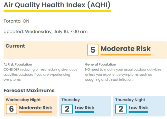 但她说,周二多伦多的空气质量改善到“中度风险”时,公共卫生当局仍对孩子们在户外是否安全“没有共识或一致的指导意见”。