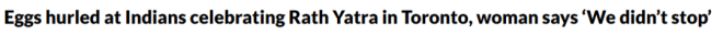 7月12日(周六),在加拿大多伦多举行的印度传统“Rath Yatra”(战车节)庆祝活动中,有人朝游行队伍扔鸡蛋,引发了关于种族歧视和排外情绪的争议。
