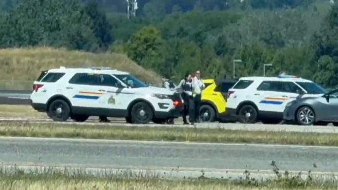社交媒体视频显示,至少有五辆皇家骑警车辆停在跑道上,一架飞机被拦截。