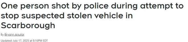 约克区警方发言人表示:“事件的完整经过仍在调查中,但可以确认的是,在警员与嫌疑人接触过程中,至少有一名警官开枪,击中了车内唯一的男子。”