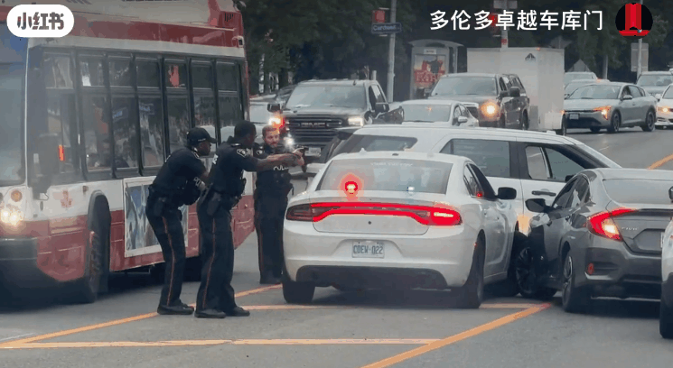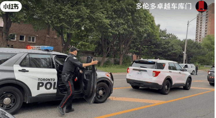 网友@多伦多卓越车库门透露,一共来了30多辆警车。