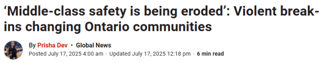 这并非个案。数据显示,安省住宅入室抢劫案件激增,2024年同比上涨近50%,多数案件涉及武器、暴力,甚至团伙作案。