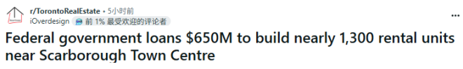 根据房地产开发商Oxford Properties周二发布的新闻稿,联邦政府将提供6.5亿加元贷款,支持在士嘉堡购物中心(Scarborough Town Centre,STC)西侧建设三栋住宅大楼,共计1,285套出租单位。其中268套住房(约占21%)被指定为“可负担住房”,项目预计将在2029年夏季完工。