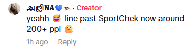 即将开门时,她在评论区表示,队伍已经超过了体育用品店SportChek,队伍大约有200多人。