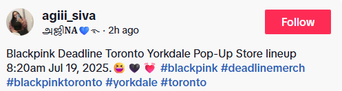 今早(7月19日),就是这次BLACKPINK快闪店的第一天。多伦多Yorkdale购物中心的北面A2入口排出了一条“长龙”: