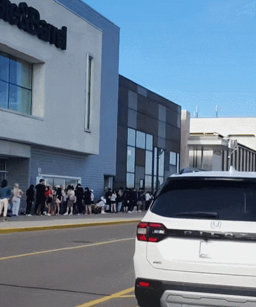 多伦多Yorkdale又排起长队了!似乎周四刚发生的枪击案并未影响大家的消费热情。