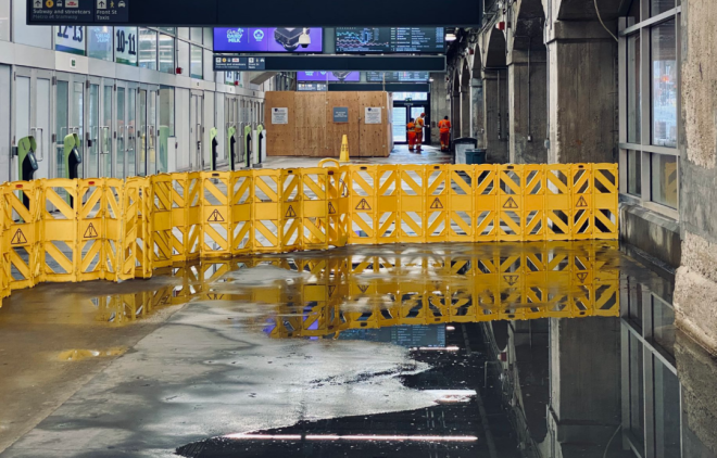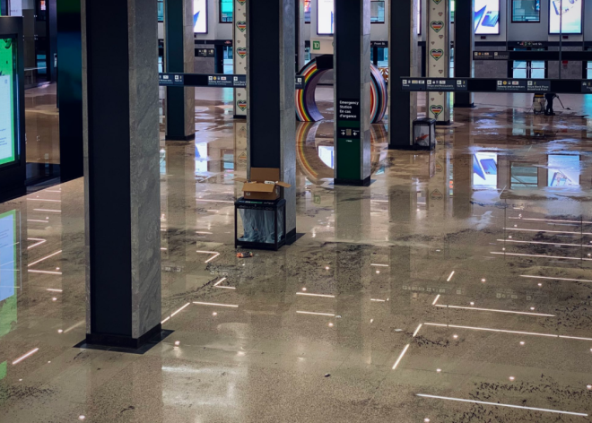 还有市民拍下联合车站(Union Station)积水严重的场景,现场被警戒带围住,部分区域已经无法通行。