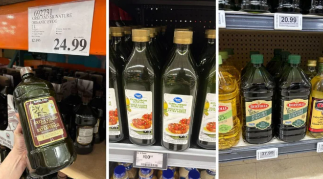 Costco:两升装的Kirkland Signature橄榄油售价$24.99,每100毫升约$1.24(胜出)