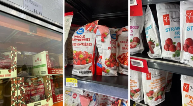 Loblaws:两袋President’s Choice冷冻草莓(600克)售价$10,每100克约$0.83
