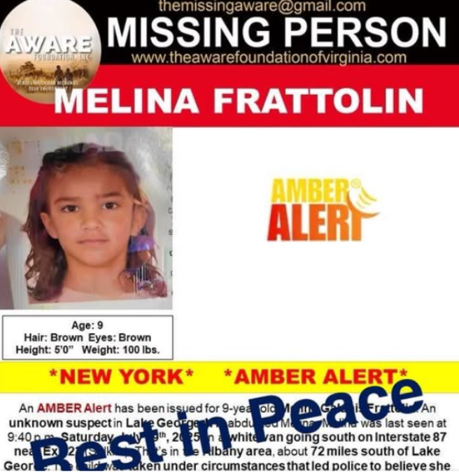 据加美多家媒体今日(7月21日)报道,加拿大魁北克省蒙特利尔一名9岁女孩Melina Frattolin在美国纽约州失踪并最终被发现遇害,其父亲Luciano Frattolin于7月21日被警方逮捕,现被控二级谋杀及掩盖尸体罪。这起案件震惊北美,引发广泛关注。