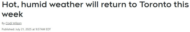 经过一段清爽宜人的后,多伦多的高温和湿度将于本周晚些时候“强势回归”。