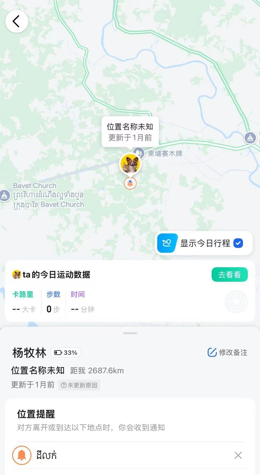 胡女士发现,表弟杨牧林手机的定位信号最后消失于柬越边界。图/受访者提供