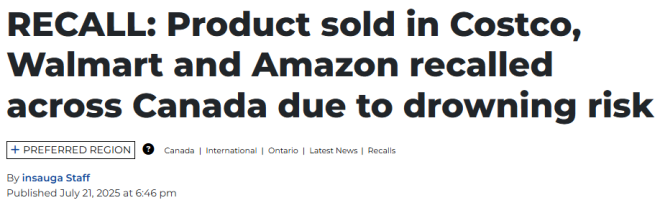 加拿大26万家庭都买过!Costco、Walmart、Amazon热销户外商品暗藏致命隐患,卫生部(Health Canada)发出紧急召回通知!